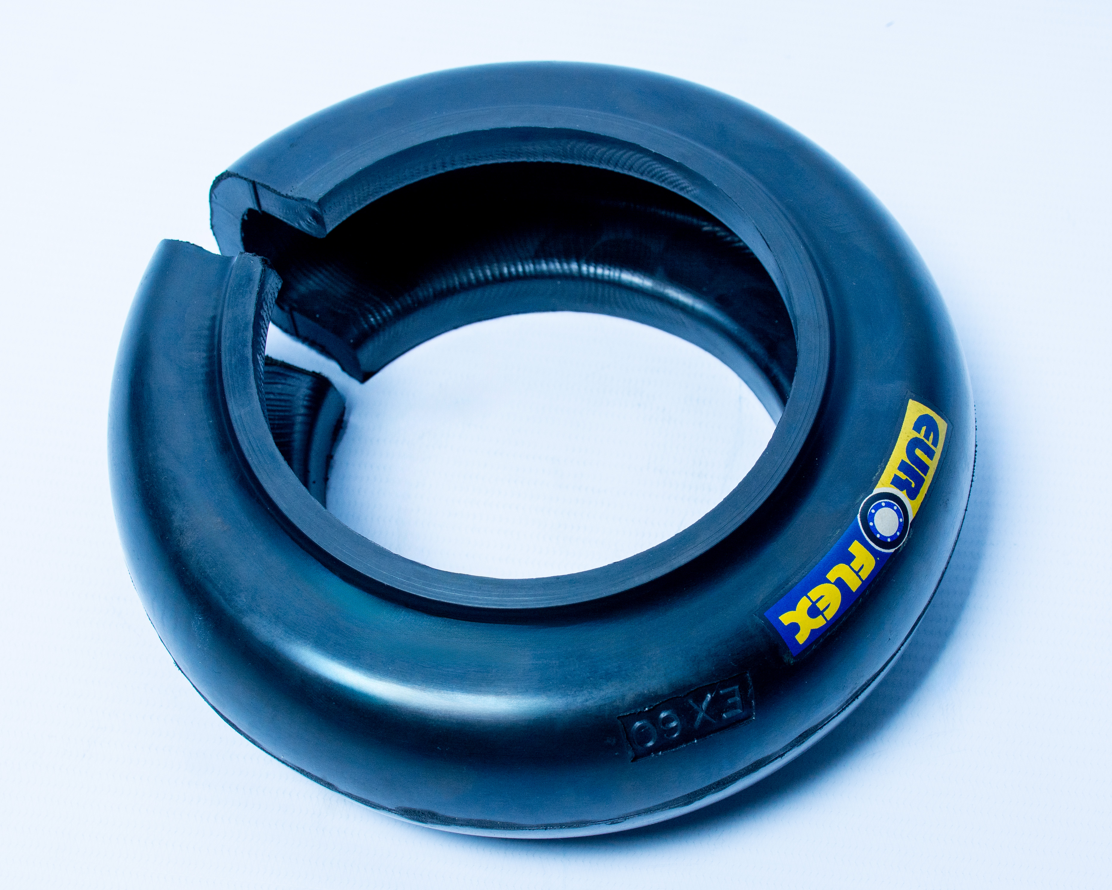 Banda partida de elastómero y telas de alta resistencia, con aros prensadores independientes.