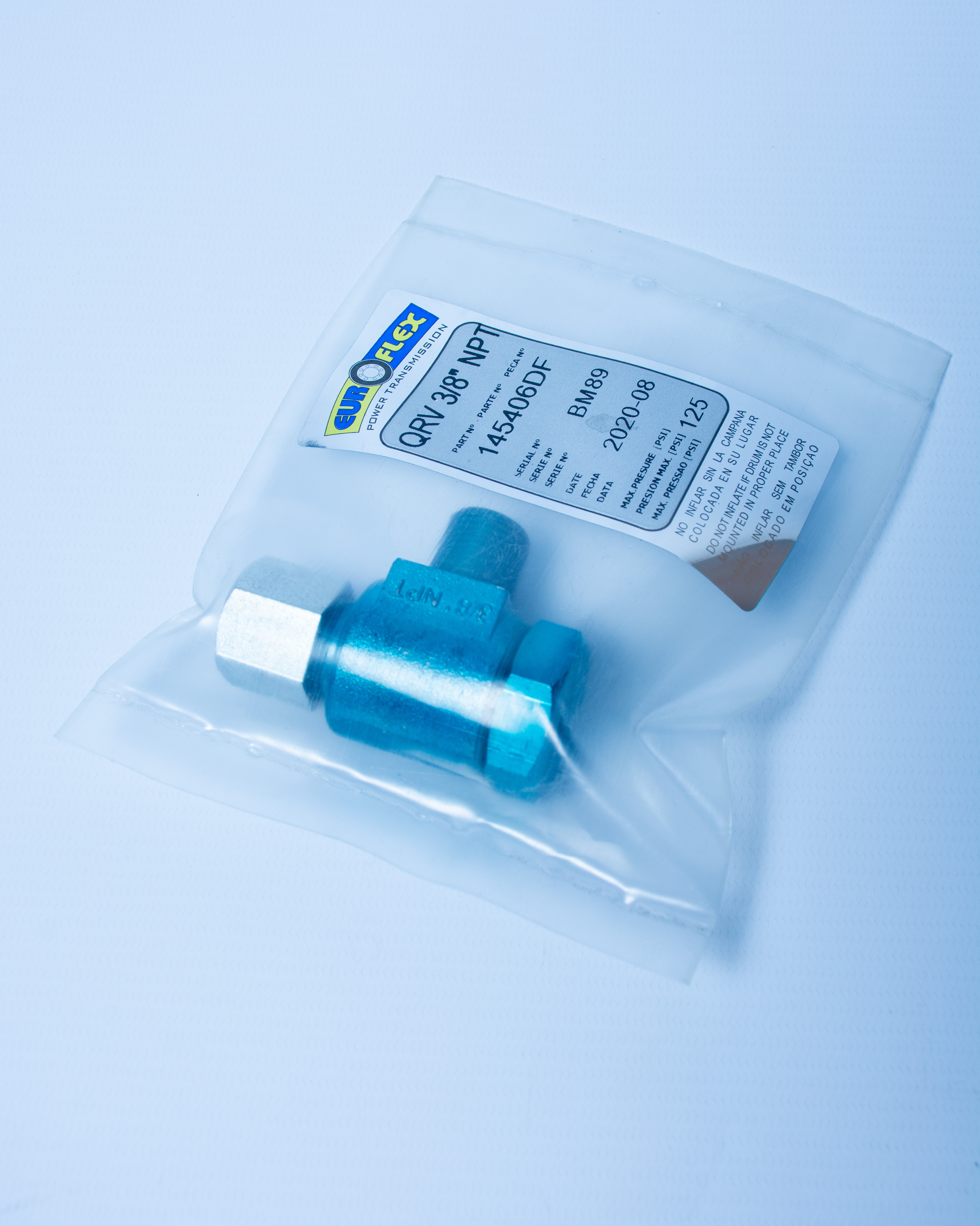 Este modelo de QRV se coloca roscado directamente en la válvula de entrada de aire del propio elemento neumático, reemplazando al codo normal.